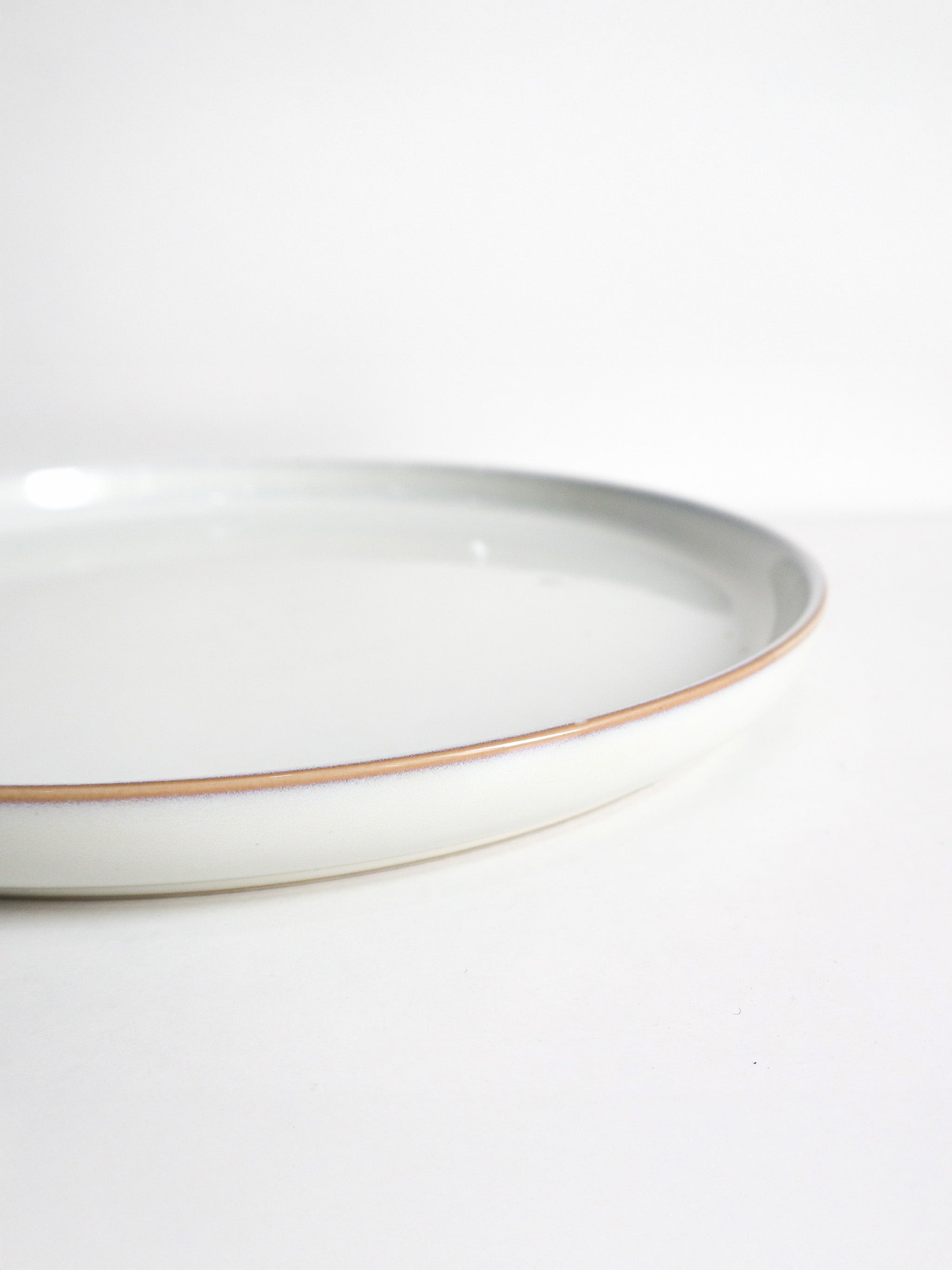 Schräge Draufsicht Teller aus recycelter Keramik in hellgrau