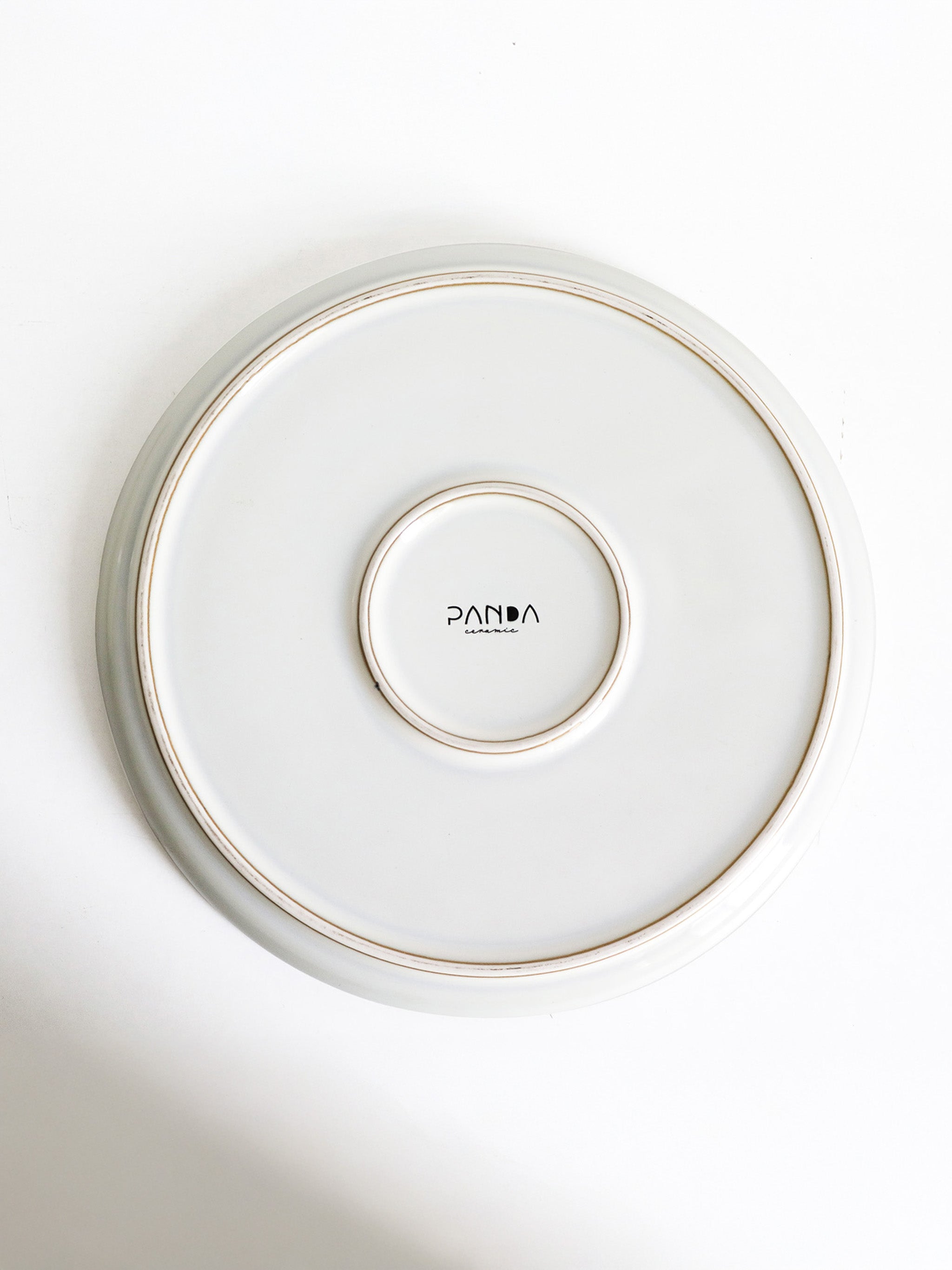Unterseite Teller aus recycelter Keramik in hellgrau